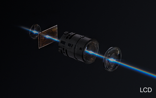 Transmissive imaging with significant brightness loss. Low contrast and dull pictures.